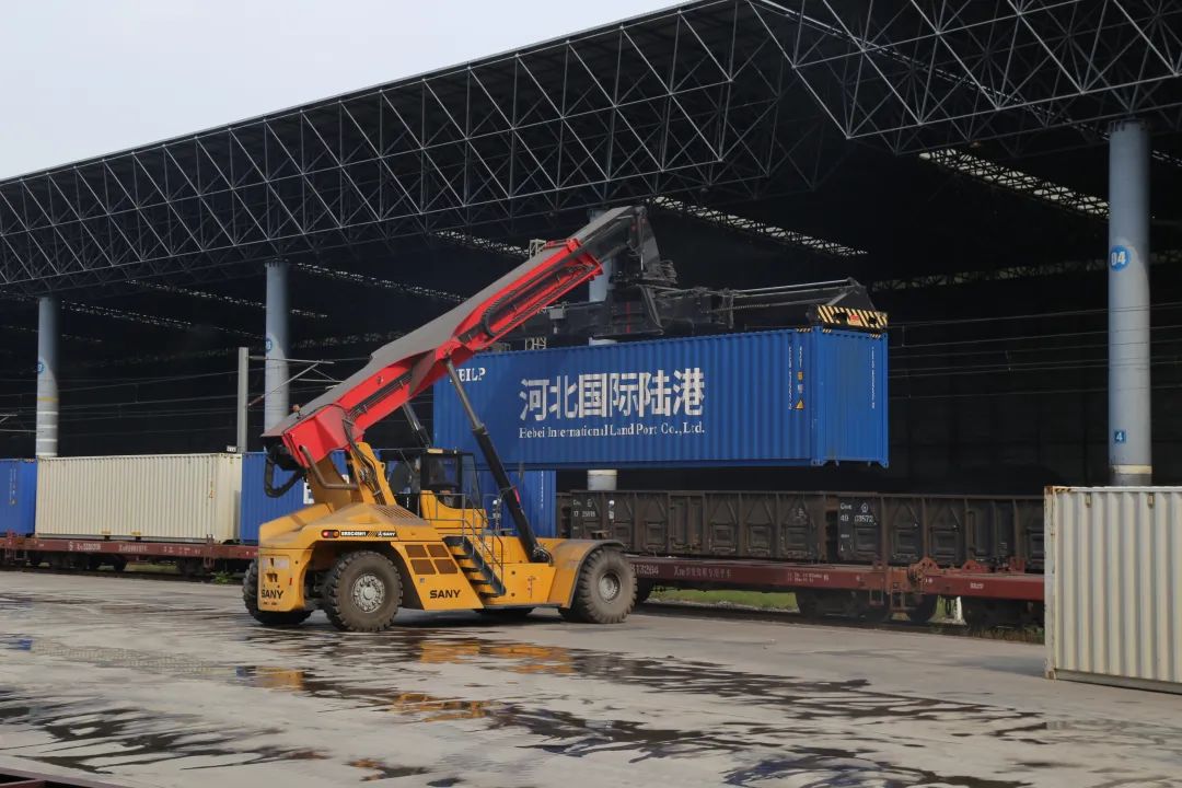 当新能源设备在货场平稳运行时,中欧班列的汽笛声也为园区注入新的活力,白货石子集装箱业务同样开展得如火如荼。
